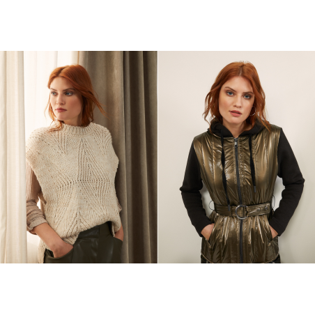 Chaleco con cuello redondo en tejido de punto. Disponible en color crudo y gris. PAZ TORRAS.