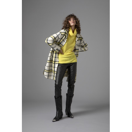 Jersey de manga larga y cuello vuelto caído, en punto liso. Disponible en color amarillo y fuxia. SEE THE MOON.
