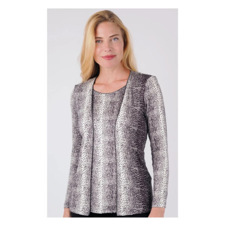 Falso conjunto de manga larga con escote redondo, en punto muy suave y agradable con estampado animal print bicolor. TANNATE.