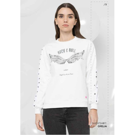 Sudadera de manga larga y cuello redondo, en punto suave color blanco con detalles en negro. ME&ME.